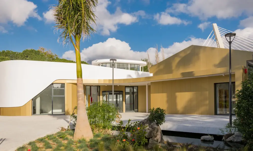 MABE HORTOFRUTÍCOLA (Las Norias) Cerramiento de muro cortina curvo fabricado con sistema estructural SG-52 de Cortizo. Todo el cerramiento está
